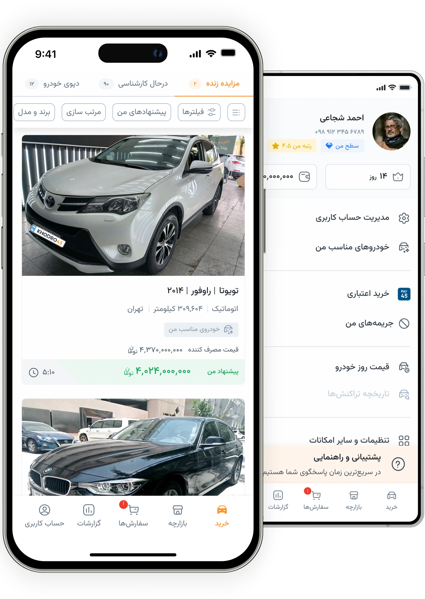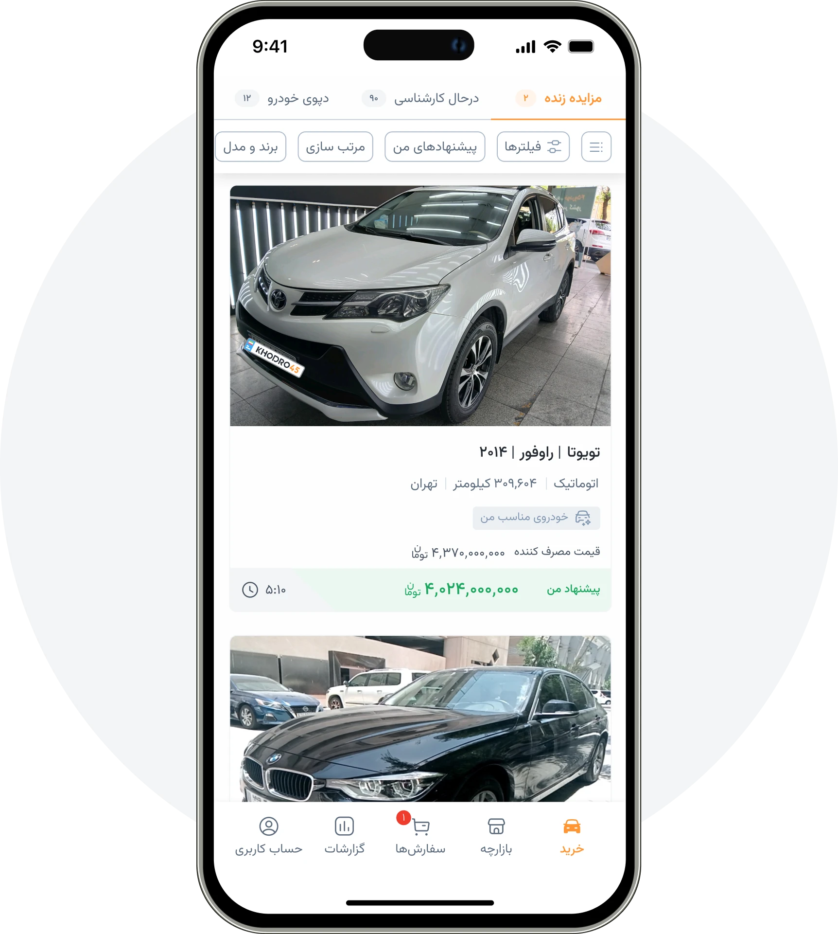 خودرو۴۵ با ایجاد پلتفرمی امن و تسهیلگر، تجربهای متفاوت از خرید خودرو را برای خریداران خودرو فراهم کرده است. با گزارشهای کارشناسی گارانتیشده و تاییدیه حقوقی تضمینی، شما میتوانید در صدها مزایده آنلاین روزانه از سراسر کشور شرکت کنید و با آسودگی، خودروی مورد نظر خود را انتخاب کنید. تمامی مراحل، از کارشناسی تا ارسال خودرو، توسط خودرو۴۵ انجام میشود. این فرآیند از طریق اپلیکیشن اختصاصی خودرو۴۵ برای شرکای تجاری در دسترس است.